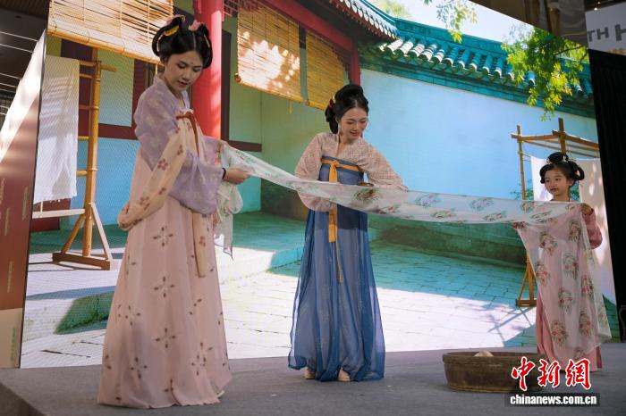 图为《少安秋宴》唐朝打扮树模上演。记者 旧永诺 摄